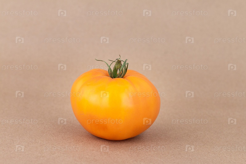 Желтый большой помидор на бежевом фоне