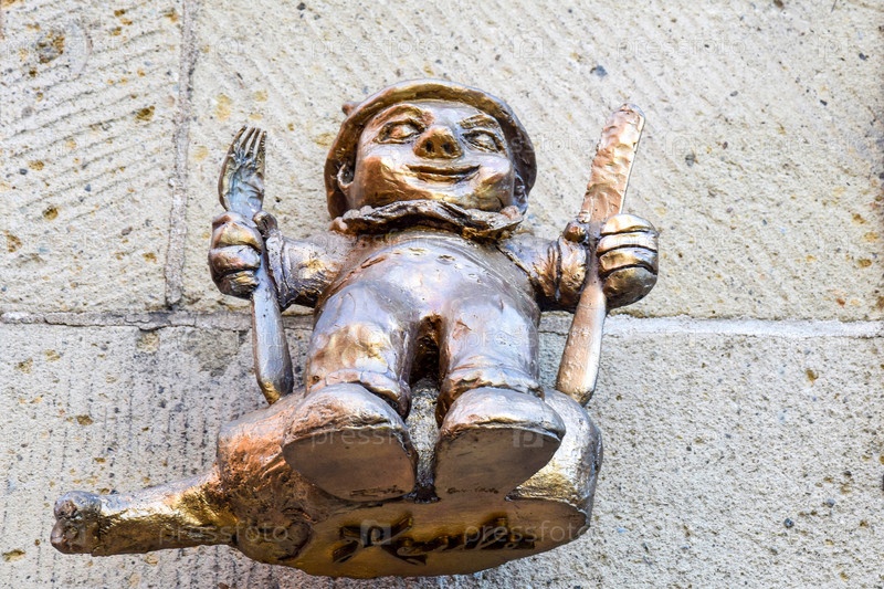 Фото человека с вилкой и ножом, сидящего на свиной рульке