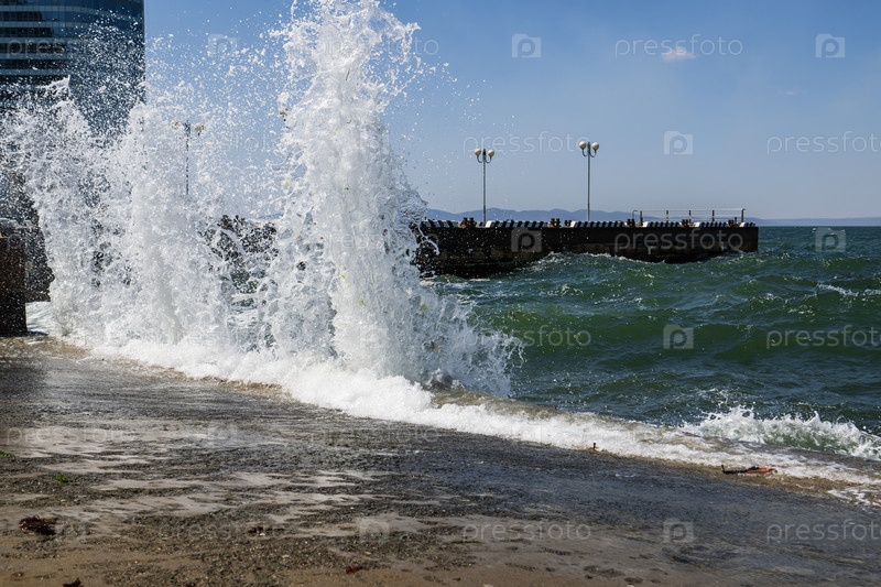 Брызги воды на пирсе