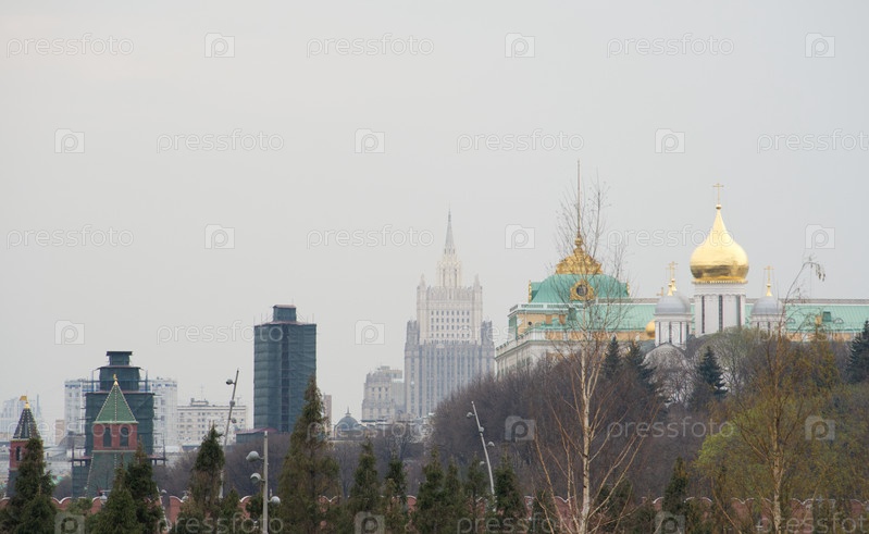 Москва, Российская Федерация, 18 апреля 2023 г., знаковые здания города на горизонте