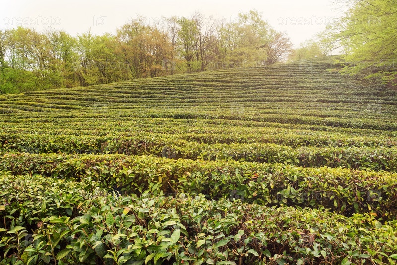 Поле с выращиванием зеленого чая, самая северная чайная плантация в мире. Сочи Россия