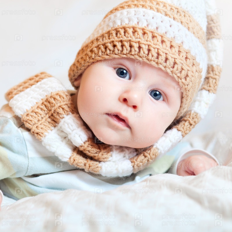 Портрет милого маленького ребенка в вязаной шапке