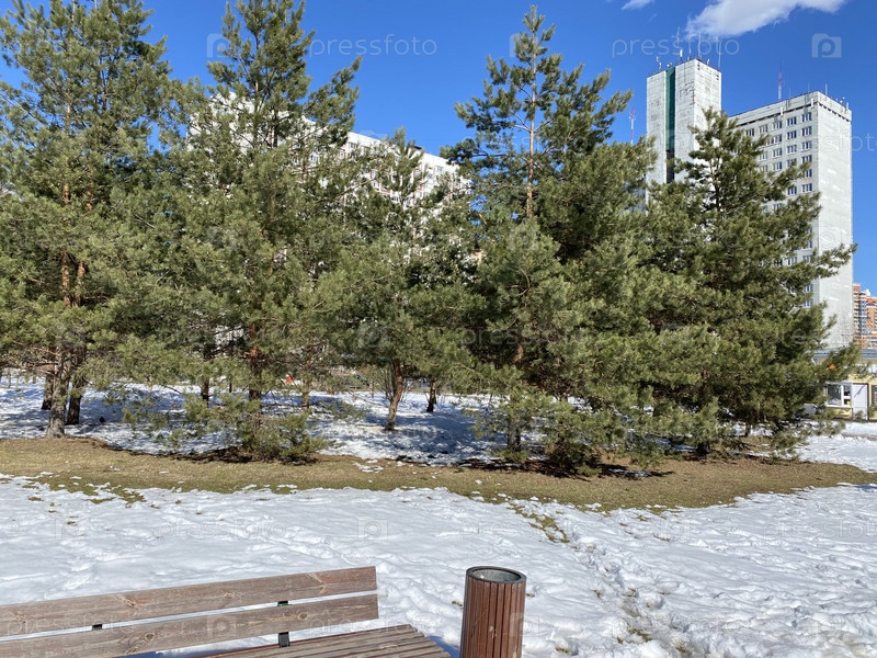 Зима в городском парке в сухой солнечный день