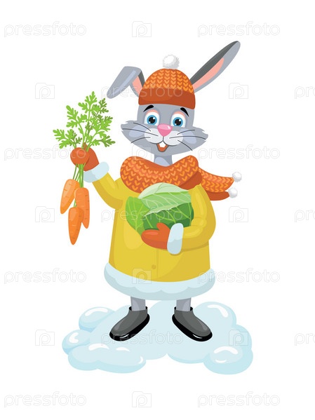 Заяц с овощами на белом фоне