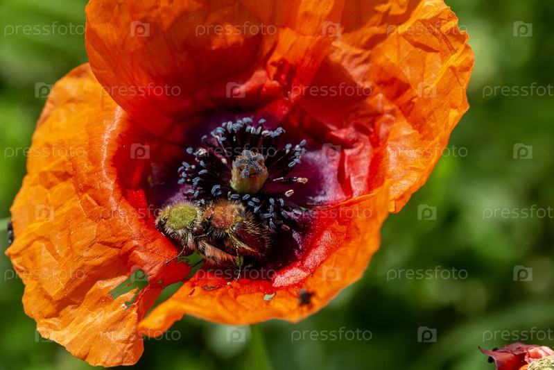 Жуки-вредители (Tropinota hirta) размножаются на цветке мака