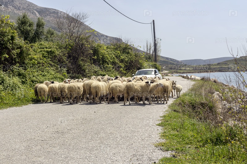 Овцы на проезжей части (Греция, остров Скирос)