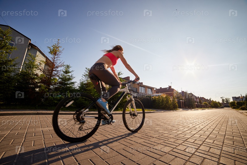 Женщина едет на велосипеде