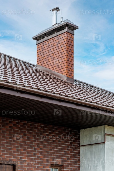 Дымоход или вентиляционная труба в частном доме из декоративного кирпича на крыше