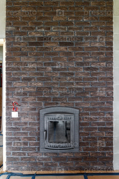 Стена из декоративного кирпича с топочной дверкой