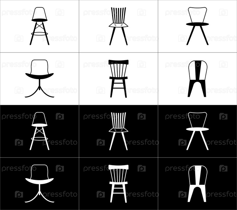 Иконки стульев на черном и белом фонах. Набор из шести иконок