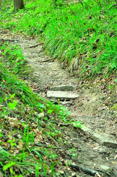 Тропинка в овраге с каменными ступенями