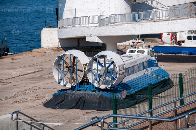 Судно на воздушной подушке Нептун 23 на стоянке на набережной