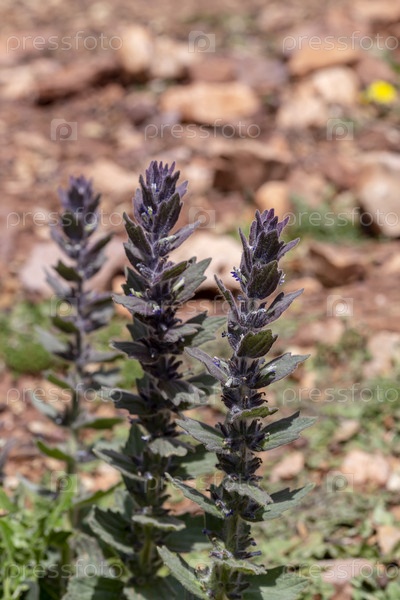 Редкое растение (Ajuga orientalis) растет в горах крупным планом