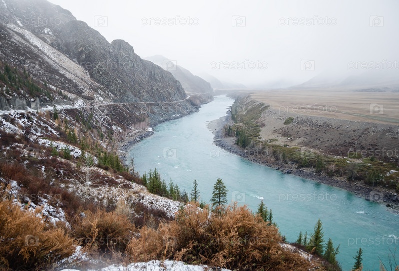 Слияние Катуни и Большого Яломана в ноябре, Алтай