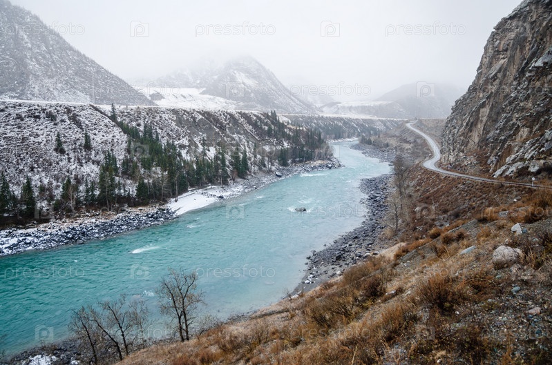 Слияние Катуни и Большого Яломана в ноябре, Алтай