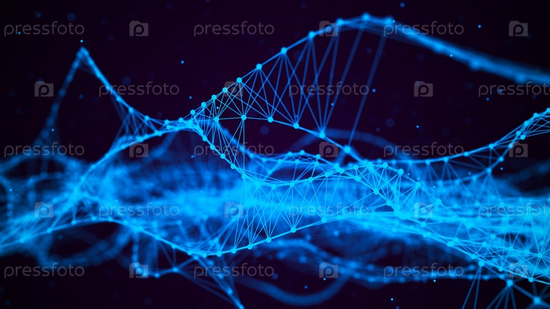 Структура ДНК. Медицина, наука и техника. Фон с волновыми линиями и частицами. Понятие генной клетки. Большие данные. 3D визуализация