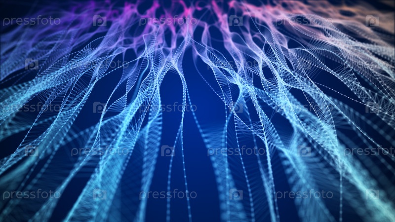 Структура ДНК. Медицина, наука и техника. Фон с волновыми линиями и частицами. Понятие генной клетки. Большие данные. 3D визуализация