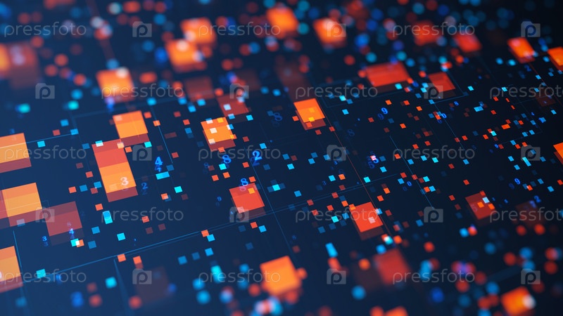 Система блокчейн. Концепции хранения больших данных и интернет-технологий. Футуристический информационный синий фон. 3d визуализация