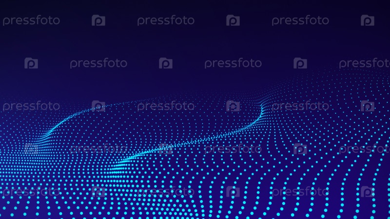 Динамическая голубая волна на синем фоне. Визуализация больших данных. Футуристическая волна частиц. Наука и технология. 3D-визуализация