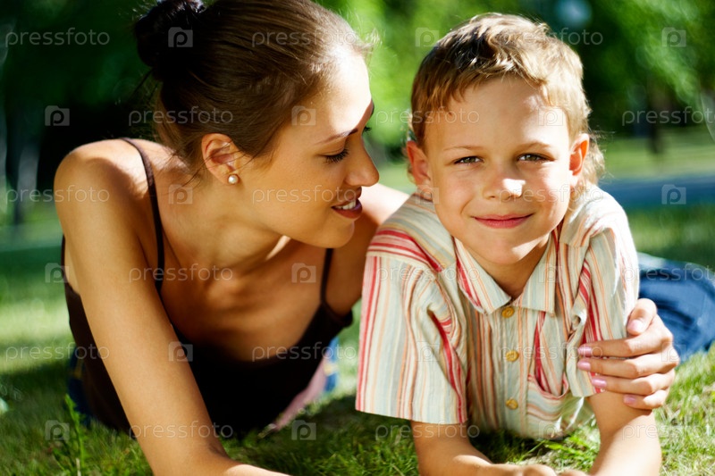 Мать и сын отдыхают в парке