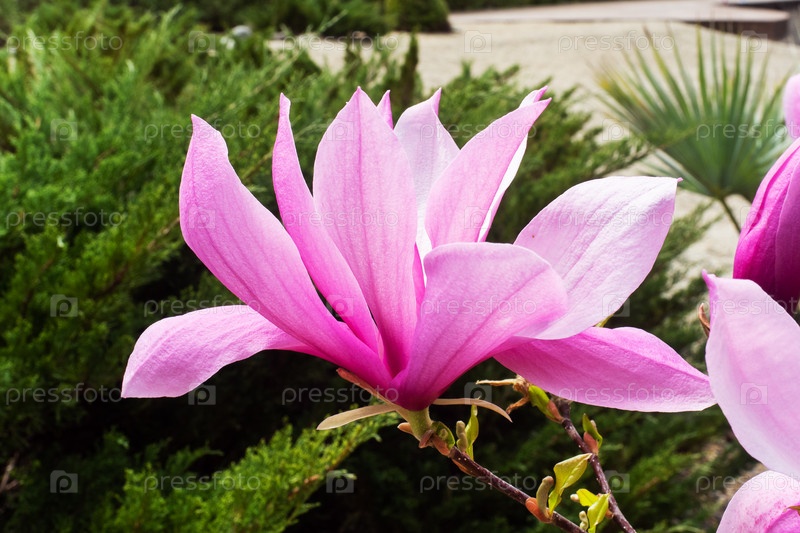 Розовые цветы магнолии цветут деревом в дикой природе. Магнолия звездчатая, выборочный фокус