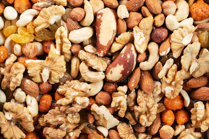 Фоновая текстура смеси орехов и сухофруктов. Концепция здорового вегетарианского питания. крупным планом