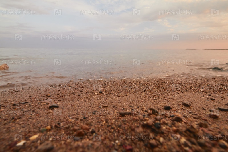 Закат над рекой, широкий угол обзора, выборочный фокус