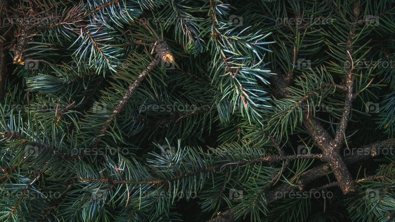 Сорванные зеленые ветки молодой ели, фоновая текстура