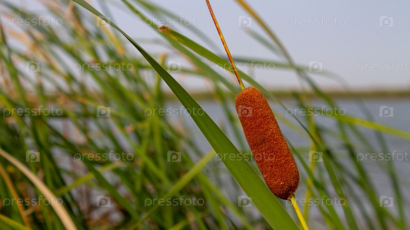 Тростник или рогоз в солнечный день на болотах или реках