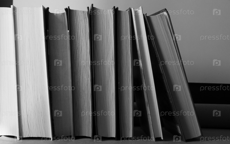 Стопка книг с абстрактными тенями в черно-белом режиме