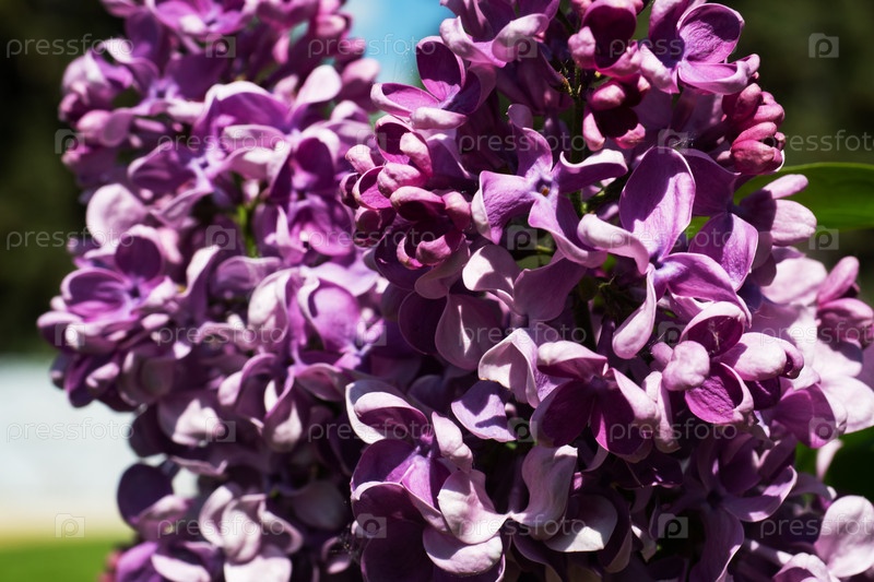 Красивые ароматные сиреньи цветки Siringa vulgaris цветут на деревьях в городском парке