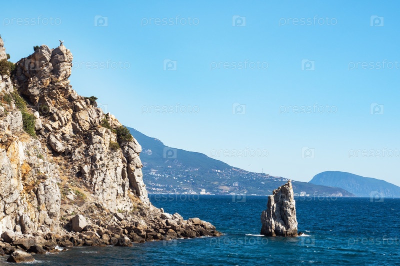 Скалистый берег Черного моря, пейзаж Крыма