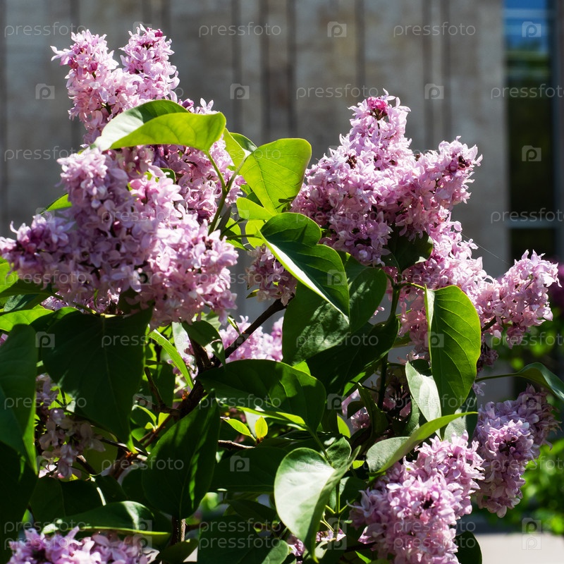 Красивые ароматные сиреньи цветки Siringa vulgaris цветут на деревьях в городском парке