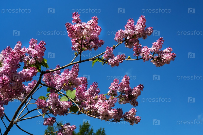 Красивые ароматные сиреньи цветки Siringa vulgaris цветут на деревьях в городском парке