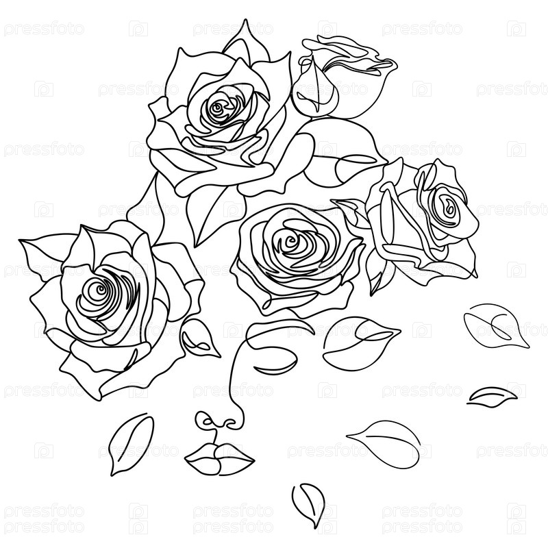 Силуэт девушка и розы