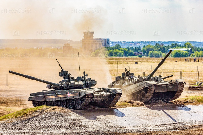 Основные боевые танки Т-72Б3 и Т-80У российской армии на показательных выступлениях