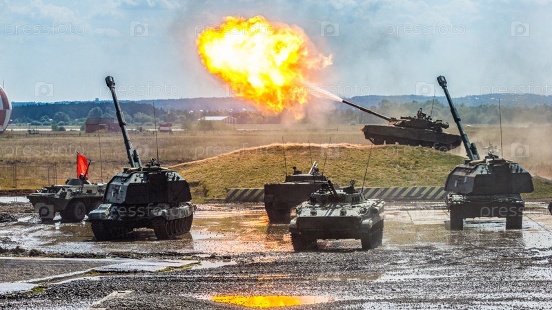 Танк Т-80У, САУ Мста-С Российской Армии на полигоне