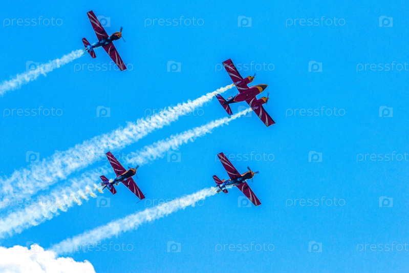 Пилотажная группа «Первый полет» выполняет показательные полеты на поршневых самолетах
