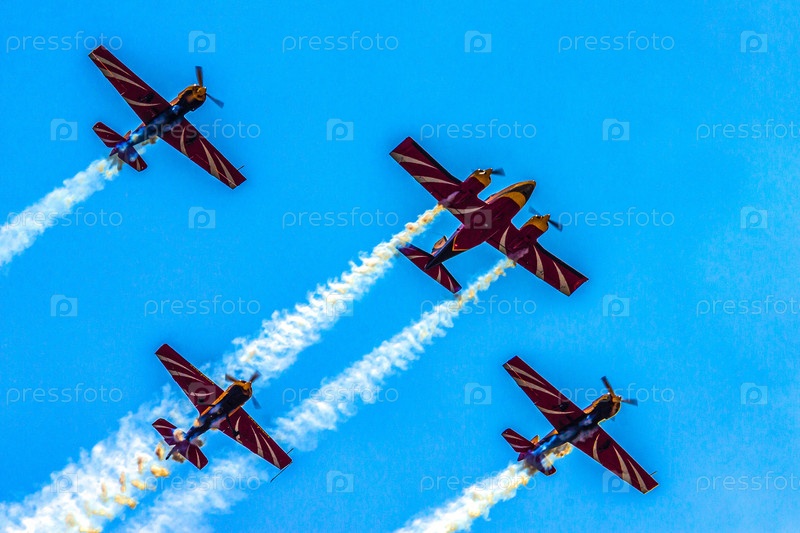 Пилотажная группа «Первый полет» выполняет показательные полеты на поршневых самолетах