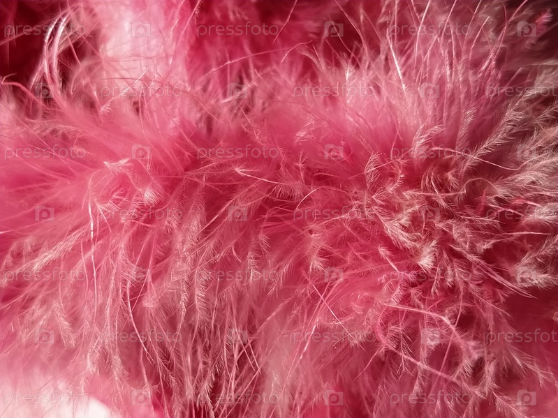 Розовый искусственный мех или натуральные птичьи перья розового цвета крупным планом. Боа из легких перьев. Нежная текстура. Открытка с Днем Святого Валентина. Воротник от женского или девичьего жакета. Ярко-розовый или цветной