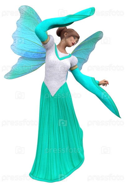 3D Фея в бирюзово-белом платье