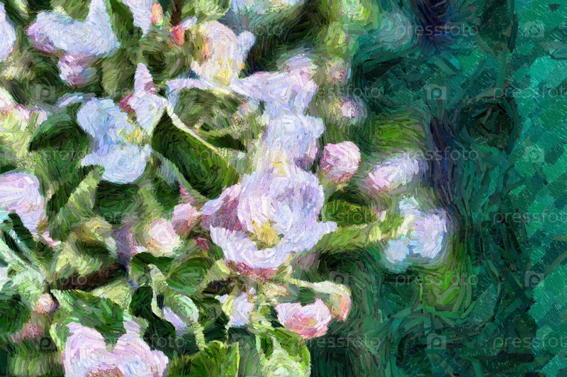 Цифровая живопись цветущей яблони