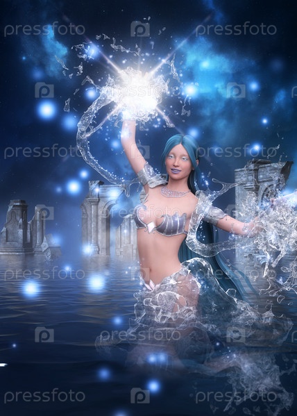 Женщина-волшебница воды в руинах
