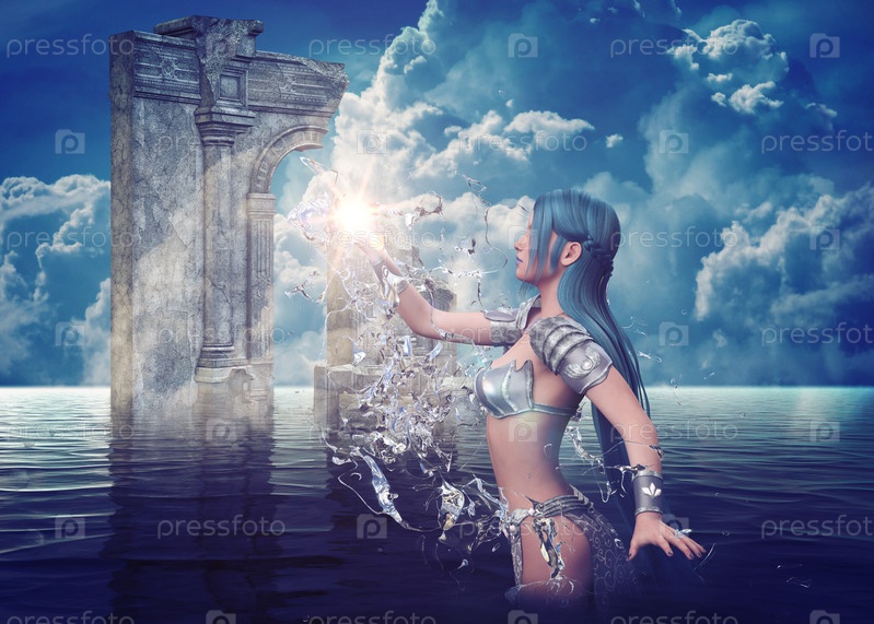 Женщина-волшебница воды в руинах
