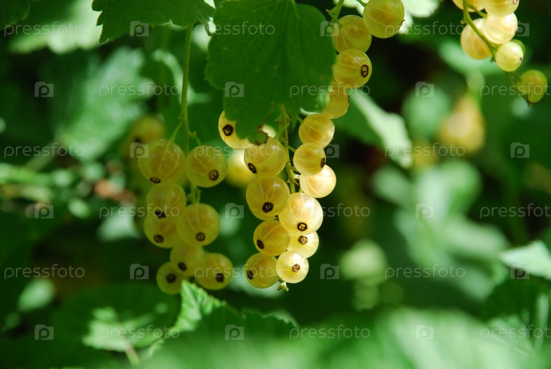 Желтоватая красная смородина в солнечном свете