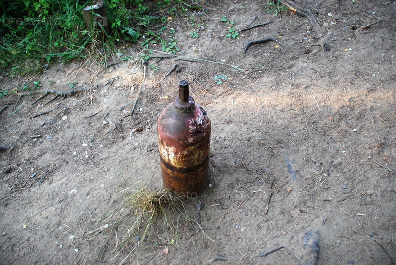 Старый металлический цилиндр в земле