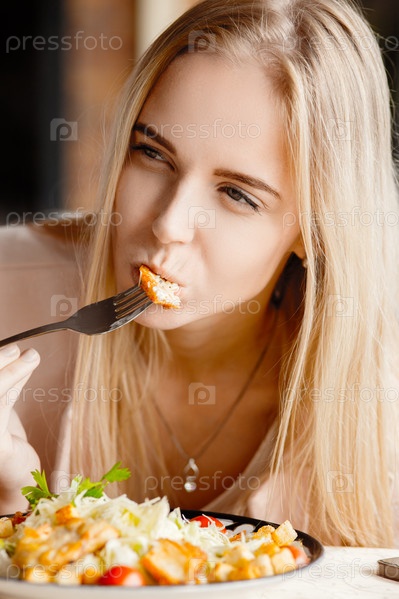 Блондинка ест