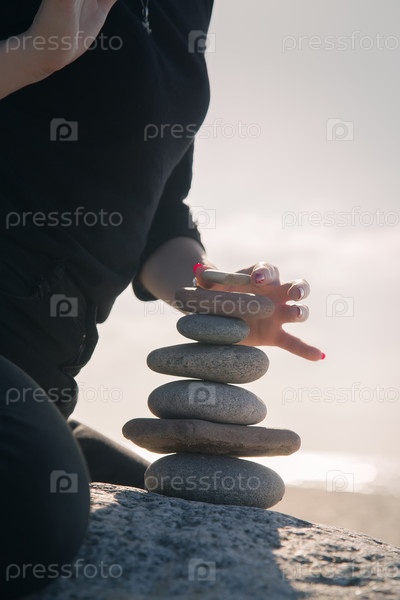 Женщина укладывает камни