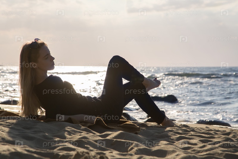 Женщина лежит на пляже