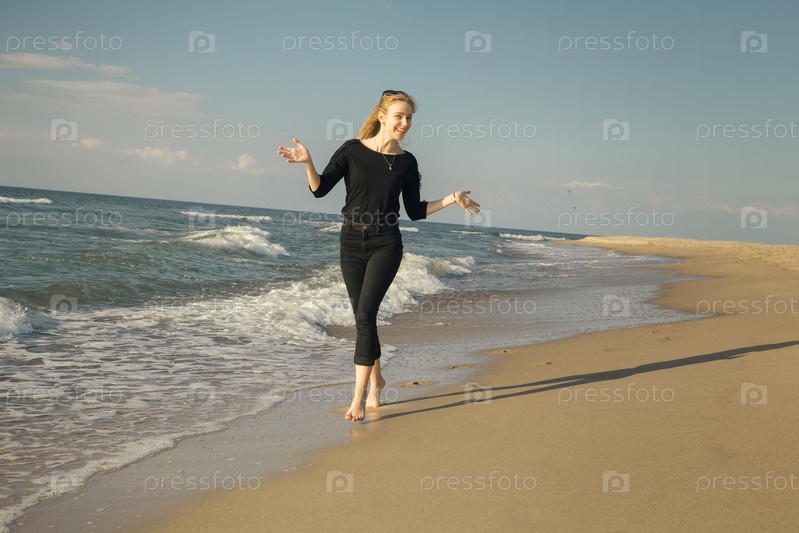 Счастливая женщина в море